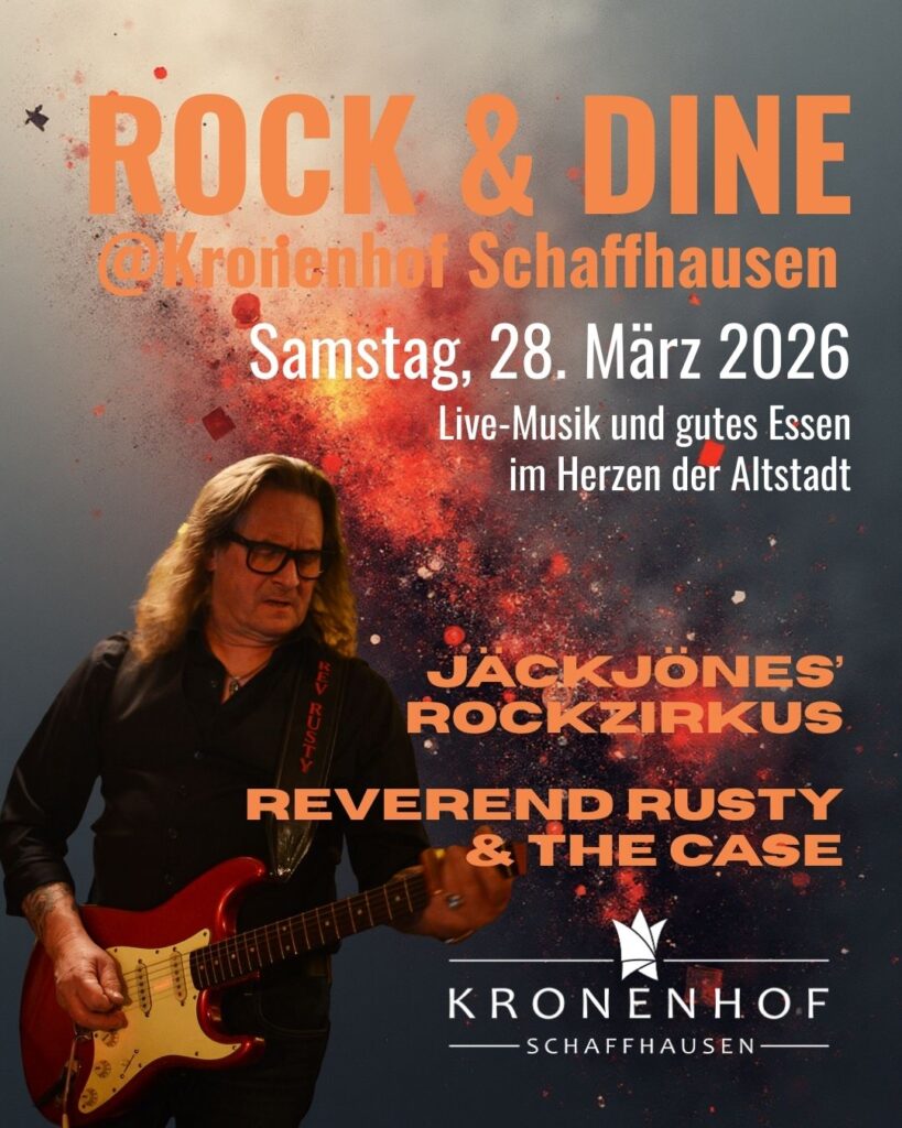 «Rock & Dine @Kronenhof» ist Teil des kulturellen Engagements des Kronenhofs und entsteht in Zusammenarbeit mit der Band-Union Schaffhausen. Gemeinsam entsteht Raum für Live-Musik, Begegnungen und besondere Abende.